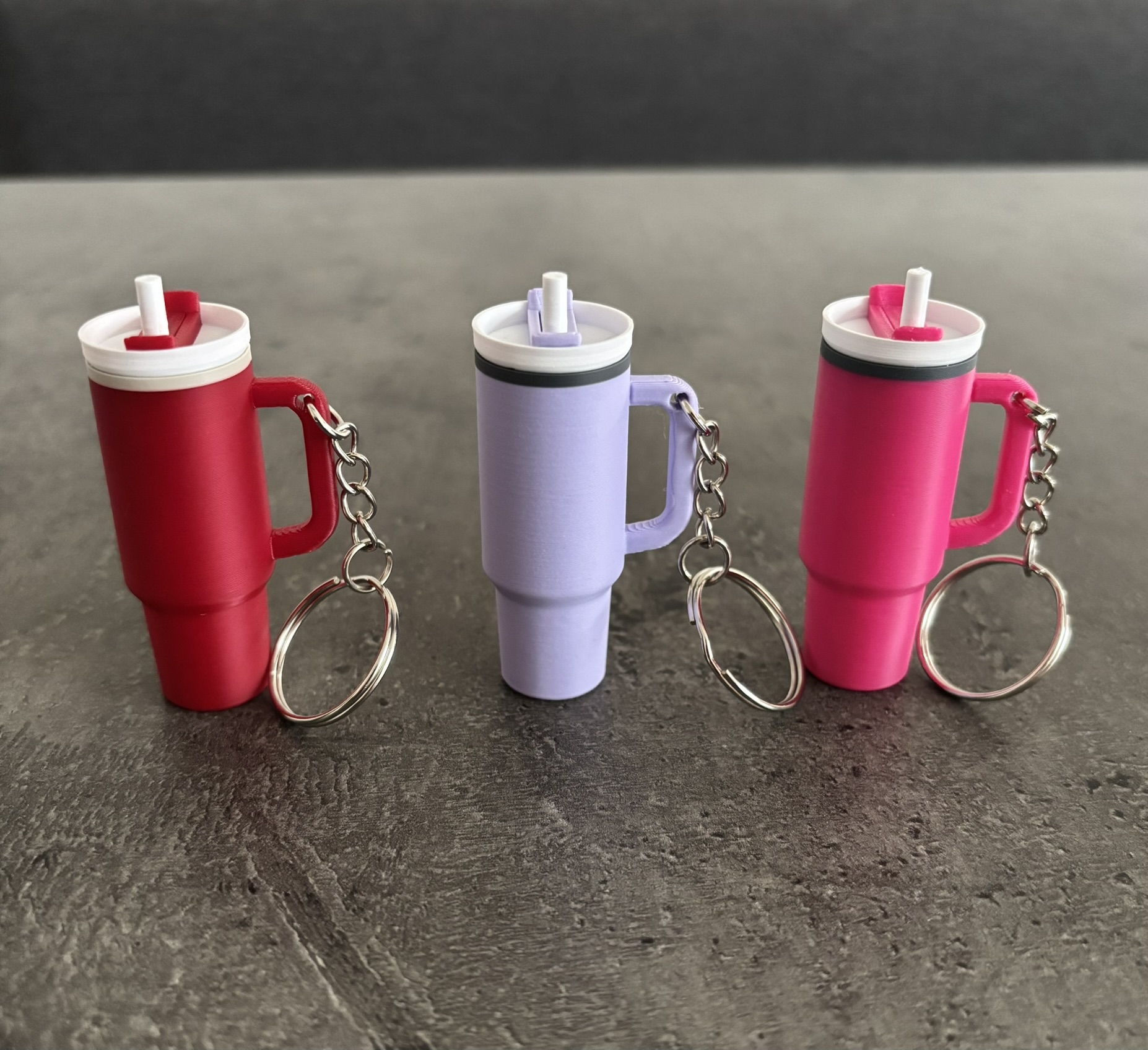 Mit Henkel, Deckel und Strohhalm gestaltet, erinnert er an moderne Coffee- oder Thermobecher und sorgt garantiert für einen kleinen Hingucker im Alltag. Die klaren Formen und die kräftigen Farben machen ihn zu einem auffälligen Accessoire für Tasche, Rucksack oder Schlüssel.