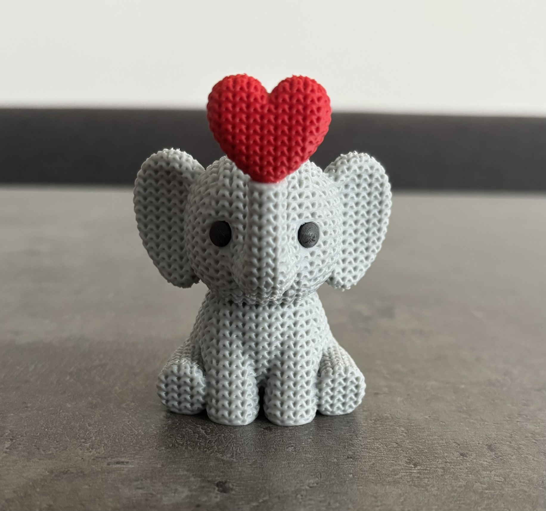 Dieser liebevoll gestaltete Elefant trägt ein Herz auf seinem Rüssel – ein Symbol für Liebe, Freundschaft und Verbundenheit.